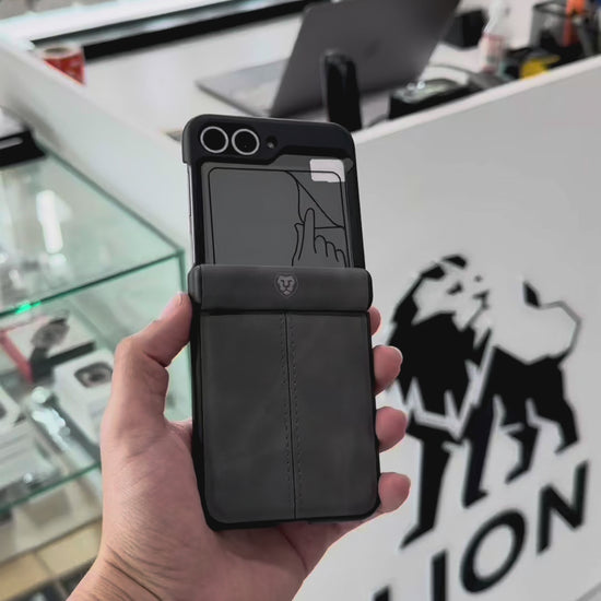 El Lion Case Prestige LCP905 combina cuero textil premium, protección avanzada en bisagra y vidrio templado frontal para brindarte la experiencia más elegante y segura para tu Samsung Z Flip.
